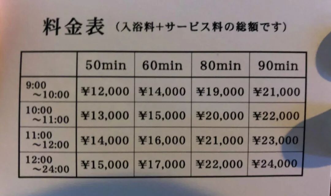 泡泡浴点一般是从早上8点开始,到晚上12点结束,所以一般到了晚上10点就不接待客人了。每个时间段的价格也是略有不同,早上8点到中午是最便宜的,中午12点到下午4点其次,下午四点到十点就是贵点。另外泡泡浴的费用是分两块的,一块是入浴料,另外一块是给妹纸的服务料金,一般是入浴料的两倍,所以泡泡浴的价格是入浴料+妹纸的服务料金,很多店铺门口就打了个入浴料的价格广告,外人看觉得很便宜,其实不是这样,去之前检查口袋钱够不够,不然会尴尬的,泡泡浴是不能刷卡的,只能现金。此外一般如果你跟店铺很熟,你预约的话到吉原地铁站会有店铺的丰田阿尔法车来接你,完事了也有车送你回地铁站。在吉原各种大大小小的风俗店里,一般都有车接送客人,也体现了日本服务行业的用心与严谨。最后有一点提醒,服务期间是严禁拍照的,不能够拍摄妹纸,一旦发现会被罚款被轰出店铺。